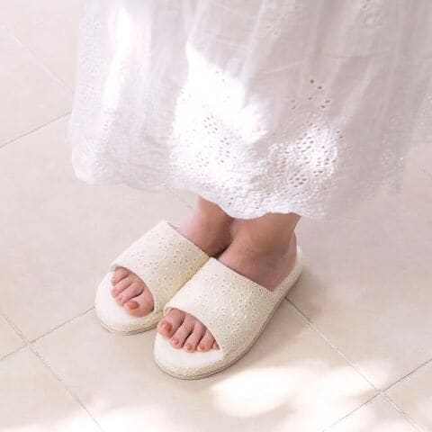 ・スリッパ(甲材:綿100%、中敷:ポリエステル100%、中材:ポリウレタン・EVA、底材:ポリエステル・EVA)