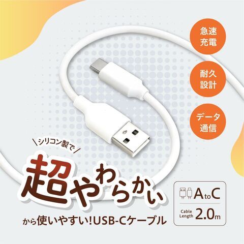 Modget USB-A to Type-C シリコンケーブル 2.0m(白)【Joshinオリジナルモデル】 JO-ACS20 【返品種別A】