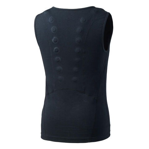 肩上部から背中にかけて広く僧帽筋に沿うように130ミリテスラの磁石をN極S極交互配列で配置。