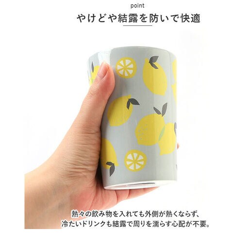 熱々の飲み物を入れても外側が熱くならず、冷たいドリンクも結露で周りを濡らす心配が不要。
