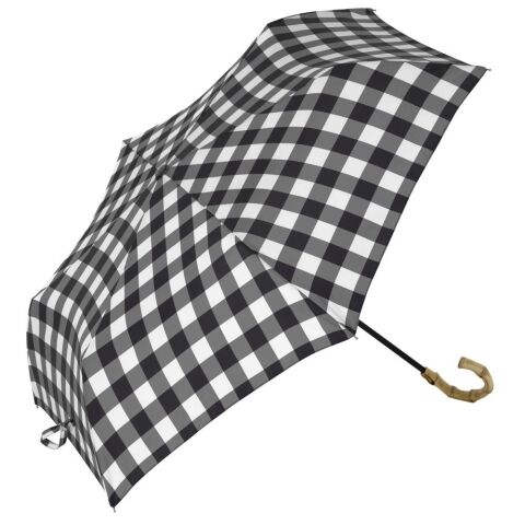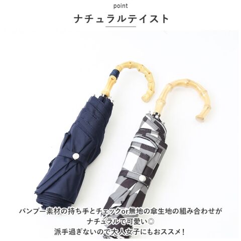 バンブー素材の持ち手とチェックor無地の傘生地の組み合わせがナチュラルで可愛い◎