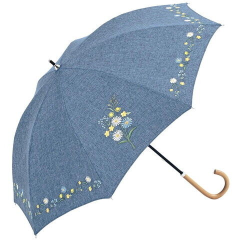 傘生地全体に涼やかな小花の刺繍をあしらった、夏の空に優しく映えるクラフト感のある仕上がり。