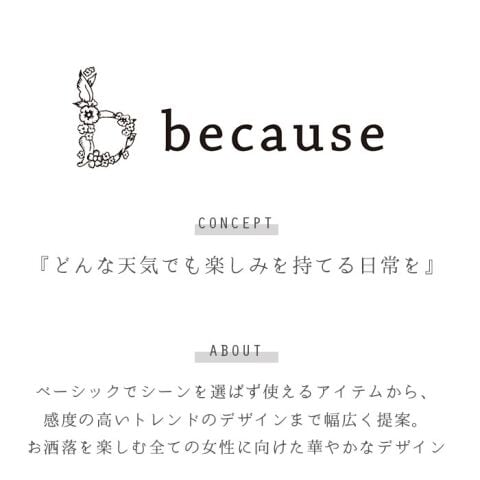 ・「どんなお天気でも楽しみを持てる日常を・・・」becauseは、雨の日も晴れの日も素敵な日常を彩るウェザーグッズを提案するブランド。