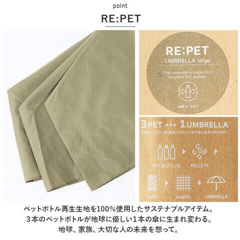 U-DAY(ユーディ) 折りたたみ傘 RE:PET LARGE MINI リペットラージミニ(カーキ) BEREPETMINIL-1A-2A 【返品種別A】