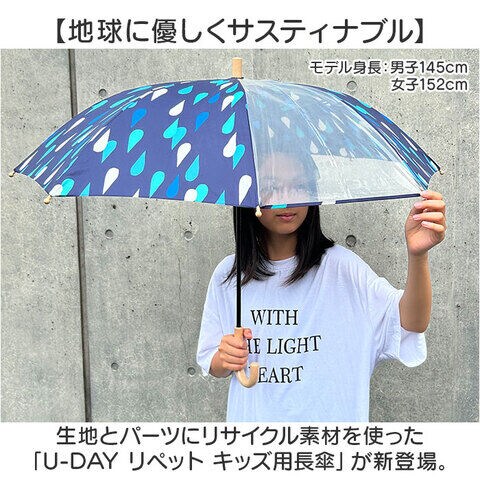 生地とパーツにリサイクル素材を使った「U-DAY リペット キッズ用長傘」が新登場。