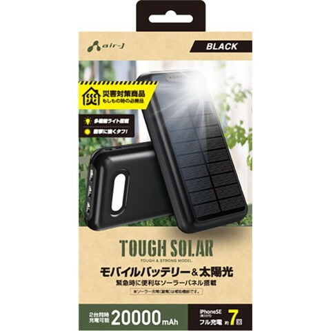 エアージェイ USB3ポート 災害対策用 ソーラーモバイルバッテリー 20000mAh(ブラック) air-J MB-S20000ABK 【返品種別A】