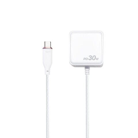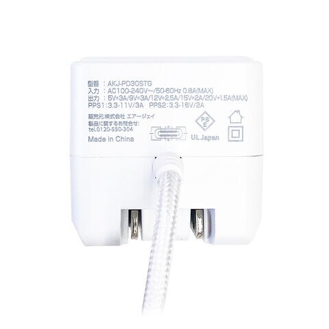 エアージェイ PD30W対応 TYPE-C直付けストロングケーブル AC充電器 1.5m(ホワイト) air-J AKJ-PD30STGWH 【返品種別A】
