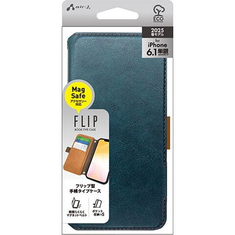 エアージェイ iPhone16e用 MagSafeアクセサリ対応手帳型PBケース(ブルー) AC-SE25-PBBL 【返品種別A】