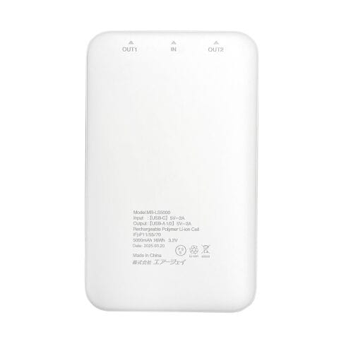 エアージェイ Type-C1ポート/USB2ポート リン酸鉄安全モバイルバッテリー 5000mAh(ホワイト) air-J MB-LS5000WH 【返品種別A】のレビュー