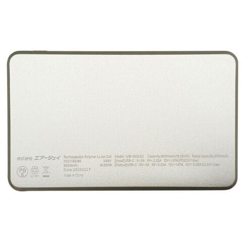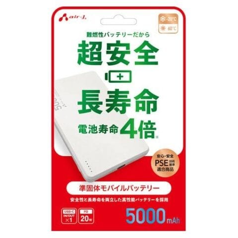 エアージェイ PD20W対応 Type-C 1ポート 準固体超安全モバイルバッテリー 5000mAh(ホワイト) air-J MB-SS5000WH 【返品種別A】