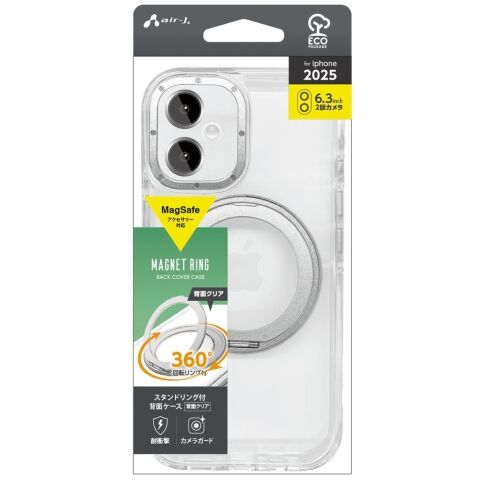 エアージェイ iPhone 17用 MagSafe対応 回転リングスタンドクリアケース(シルバー) air-J AC-P25-CMRSL 【返品種別A】