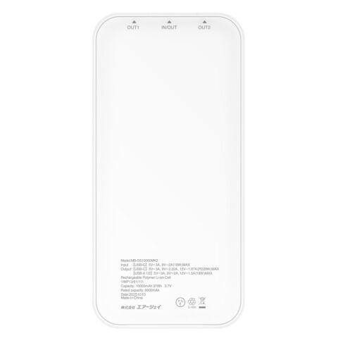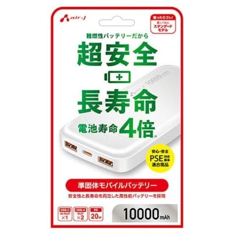 エアージェイ PD20W対応 Type-C 1ポート/USB 2ポート 準個体安全モバイルバッテリー 10000mAh(ホワイト) air-J MB-SS10000MK2WH 【返品種別A】