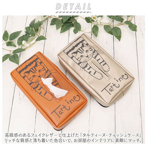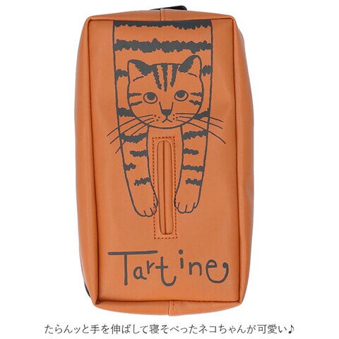 ◆たらんッと手を伸ばして寝そべったネコちゃんが可愛い♪高級感のあるフェイクレザーで仕上げた「タルティーヌ・ティッシュケース」