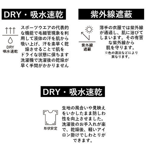 ◆汗ばむ季節に嬉しいDRY吸水速乾仕様。通気性に優れ、快適な着心地◎