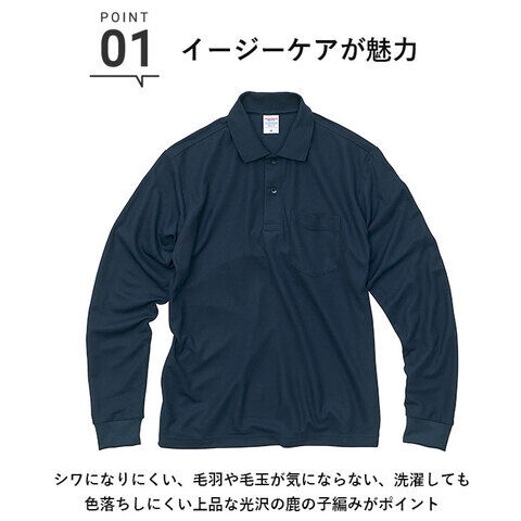 United Athle 4.7オンス 長袖ポロシャツ(ネイビー・サイズ:XL) ユナイテッドアスレ 無地 2024-01-086-XL 【返品種別A】