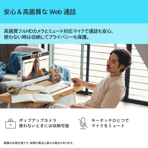 高画質フルHDカメラとミュート対応マイクで通話も安心。