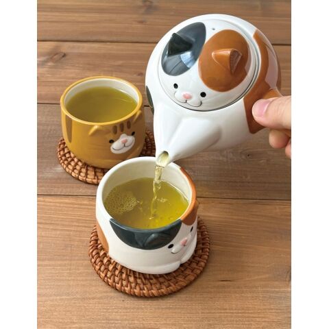 ◆ころんとかわいい、猫の湯呑みと猫の急須ではんなりお茶の時間♪
