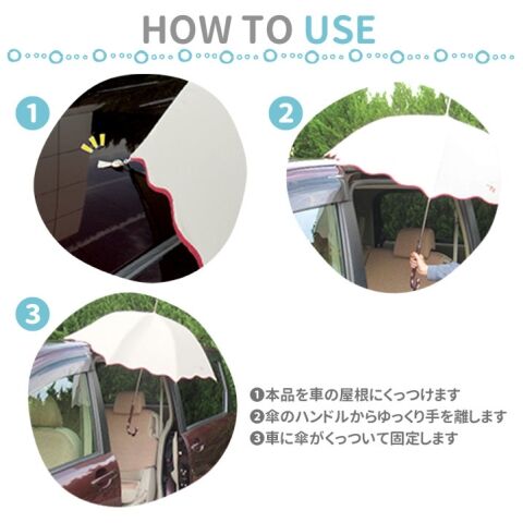 ◆車の乗り降りの際に本品を車の屋根にくっつけることで、傘のハンドルから手を離しても大丈夫。