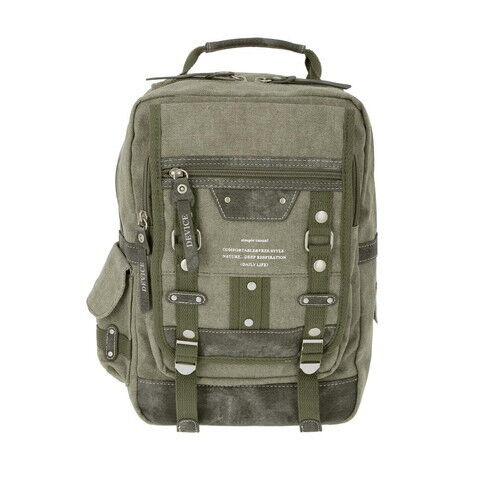 バッグ本体生地は、独特のムラ感が印象的なテトロンコットン素材に、フェイクレザーパーツを組み合わせたビンテージ感あふれる仕上がり。