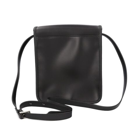 カチッとしたスクエア型フォルムに、シルバーのバックルがひそやかな輝きを添える、シンプルなミニショルダー。