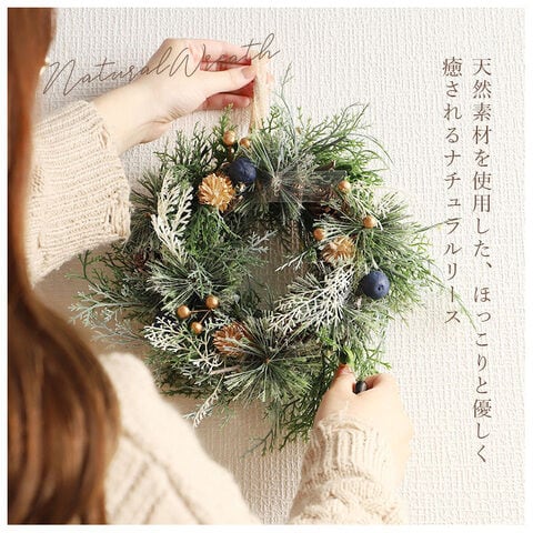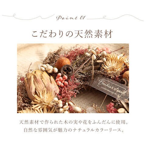 天然素材で作られた木の実や花をふんだんに使用! 自然な雰囲気が魅力のナチュラルカラーリース♪