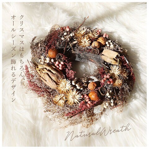 天然素材で作られた木の実や花をふんだんに使用! 自然な雰囲気が魅力のナチュラルカラーリース♪