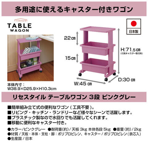 JEJアステージ リセスタイル テーブルワゴン3段(ピンクグレー) JEJ JEJ-リセテ-ブルワゴン3D-PG 【返品種別A】