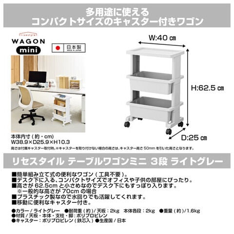 JEJアステージ リセスタイル テーブルワゴンミニ3段(ライトグレー) JEJ JEJ-リセテ-ブルワゴンミニRG 【返品種別A】