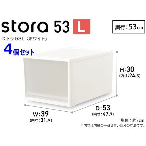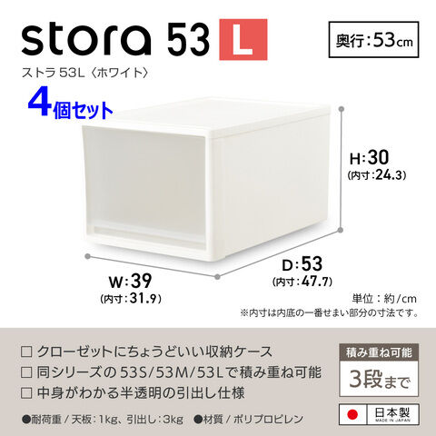 JEJアステージ ストラ53-L クローゼット用(4個セット・ホワイト・前面クリア) 収納ケース 幅39×奥行53×高さ30cm ストラ53-L(4コセツト) 【返品種別A】