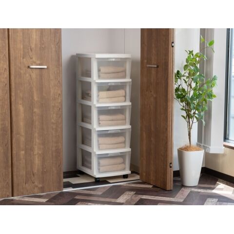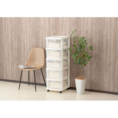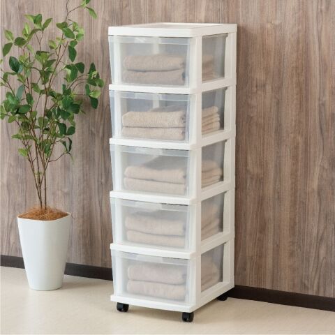 ◆引出しクリアタイプで中身の確認がとりやすい5段チェストです
