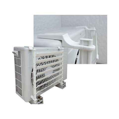 ◆両面テープで取り付け可能な室外機専用取付台座(ASA製)と落下防止の紐も付属しています。