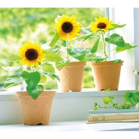 ◆古紙で出来た国産のポットで育てるミニヒマワリ栽培セット。