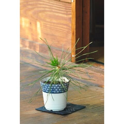 ◆細やかな藍色の小紋がデザインされた染付けの器で黒松・桜・もみじを栽培します。