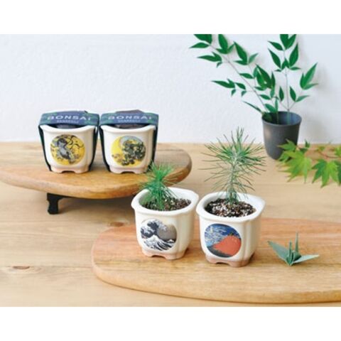 ◆日本美術の代表作をあしらった盆栽鉢で育てる黒松の栽培セット。
