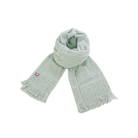 マフラーの生地は、保湿性や通気性に優れたコットン100%素材。日本一のタオルの産地、愛媛県今治市で造られた安心の「Made in Japan」製品。