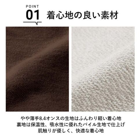 ◆やや薄手8.4オンスの生地で、重ね着してももっさり感がなく、軽くて動きやすい!