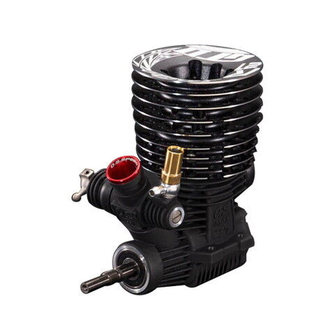 クランクシャフトはカウンターウエイトにタングステン2ケ仕様を採用。細部寸法を見直すことでマスバランスを最適化しました。 インナーヘッドは新規設計。低中速のフィーリング、アイドリング性能の向上。Oリングも採用し振動低減や防塵性を高めています。 アウターヘッドも新規設計。従来品に比べて、軽量化に成功。外周部に加工を施し、レーシーな雰囲気を醸し出しています IFMARレギュレーションに合わせた掃気5ポート+エキゾースト3ポートを採用。 ダブルアジャストタイプの22E(B)GTキャブを装備。レデューサーは新規設計の7.0MM(RED) AL2。