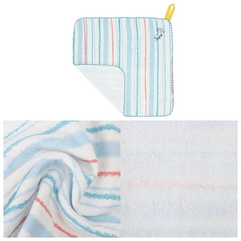 表はガーゼ、裏がパイルタオルで、表のガーゼ部分には、起毛加工を施しているので、ふんわりやさしい肌触りで吸水性も◎