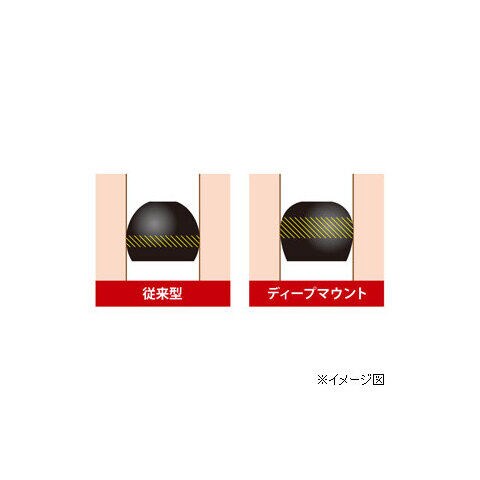 ディープマウントイヤーピースは従来型とは異なり、フィットするエリアが広い形状を新開発。