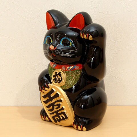 京都 リュウコドウ 小判付招猫 左手(8号・黒) 018-0118B 【返品種別A】