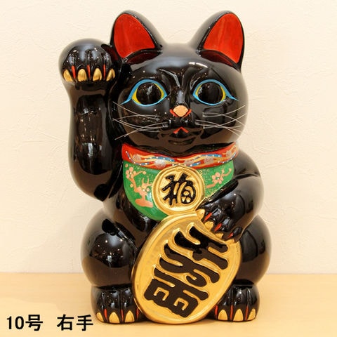 京都 リュウコドウ 小判付招猫 右手(10号・黒) 018-0155A 【返品種別A】
