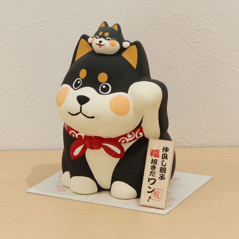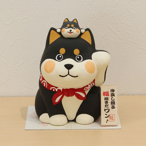 京都 リュウコドウ 親子で福招きだワン貯金箱(黒) 019-0386A 【返品種別A】