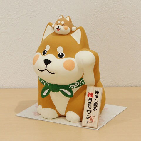 ◆仲良く福招きをする柴犬の親子に癒されます。