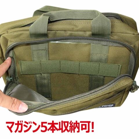 ピストル2丁とマガジン5個を収納可能なバッグです。