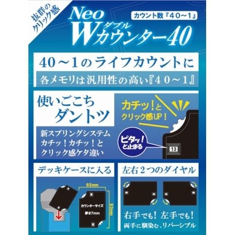 「使い心地ダントツ! 」:スプリングシステムで、カチッ! カチッ! とクリック感ケタ違い。 「デッキケースに入る」:デッキケースに入るTCGカードサイズ 「左右1つのダイヤル」:右手でも左手でも馴染む、リバーシブル!