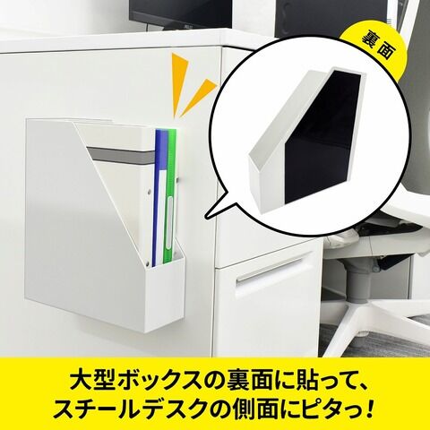 ◆大型ボックスの裏面に貼って、スチールデスクの側面にピタっ! はさみやカッターで切れます!