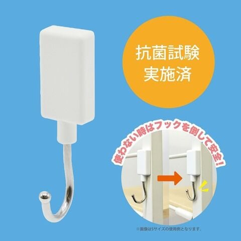 ◆左右に倒せるコンパクトフック。使わない時はフックを倒して安全!