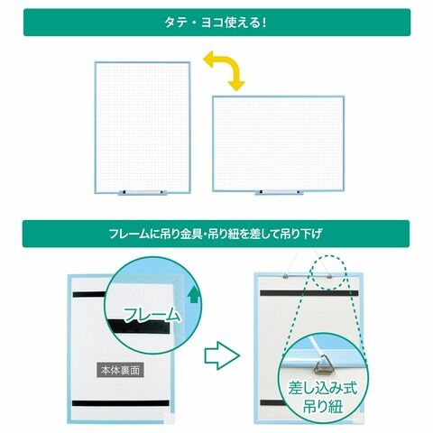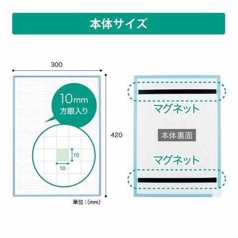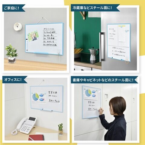 ◆裏面マグネット付きのホワイトボードシリーズ。スチール壁面、冷蔵庫、黒板などに貼って使えます。A3サイズのタテ・ヨコ両方使える暗線入りホワイトボードです。