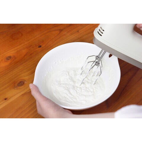 用途に合わせて5段階のスピード調整が可能で、低速時には回転数が低くなるため飛び散りにくく、生クリームの泡立てもらくらく。