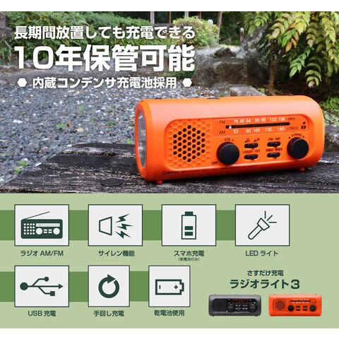ドリテック さすだけ充電ラジオライト3 オレンジ dretec PR323R PR-323ROR 【返品種別A】